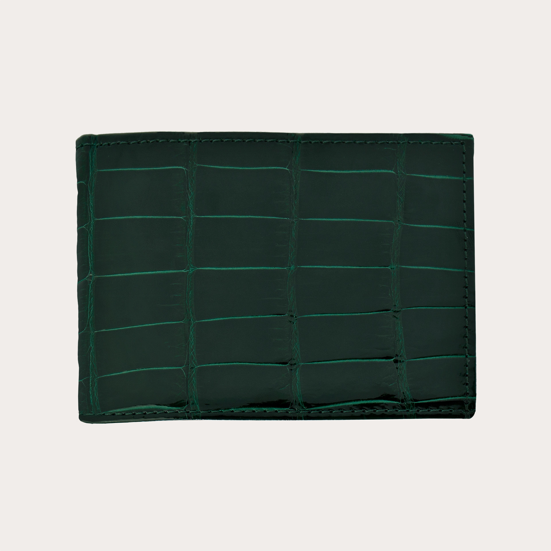 Luxurious men's crocodile wallet crafted from the square tail scales, the most exclusive part. In a beautiful and distinctive petrol green color, it is entirely handmade in Italy. Equipped with 4 credit card slots and a coin pocket with snap button closure, it is a versatile and spacious model. Customisable with engravings, it makes a perfect gift idea.