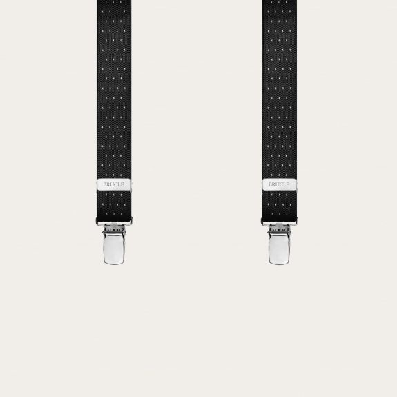Skinny Y-shape elastic suspenders with clips, white dotted black