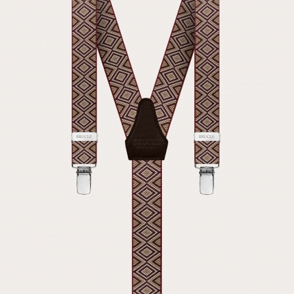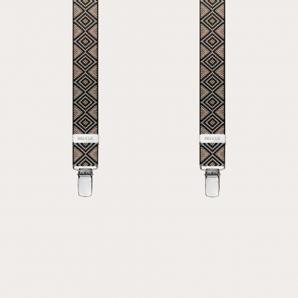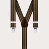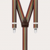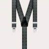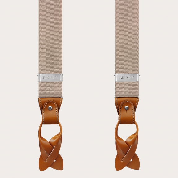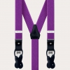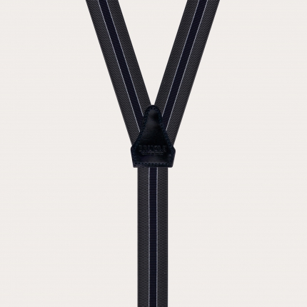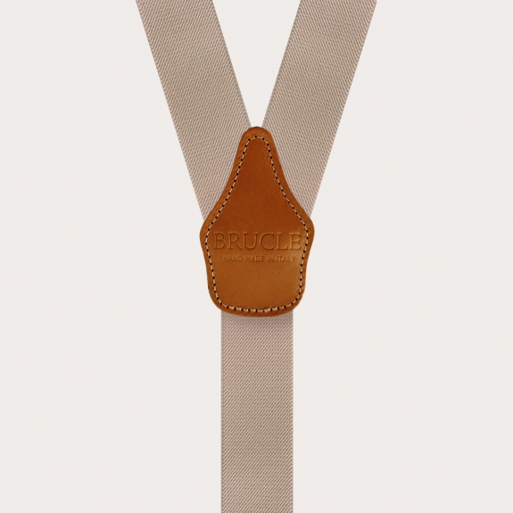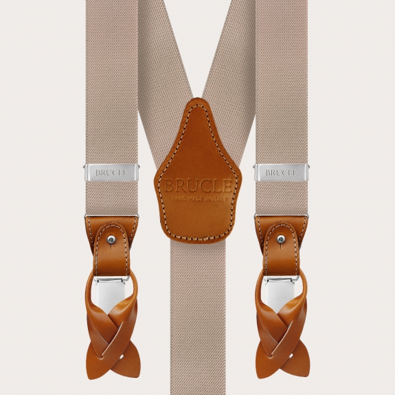 A model of suspenders that can be used with both clips and leather buttonholes, to ensure maximum versatility and durability of the accessory.