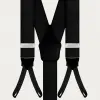 Formal skinny X-shape elastic suspenders with clips, satin blue navy