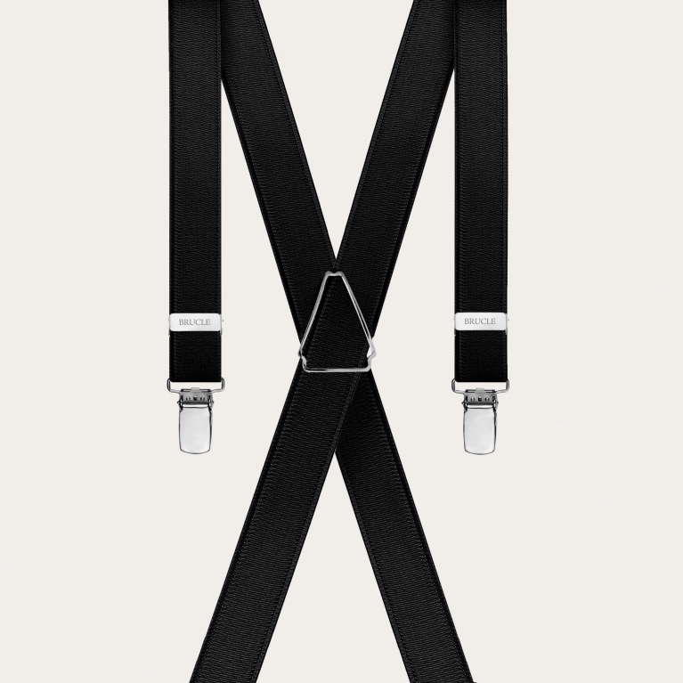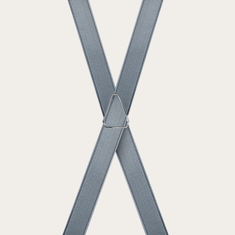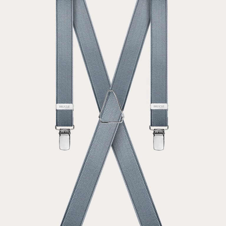 X-shape elastic suspenders with clips, satin blue navy. Entirely handmade in Italy, these suspenders are ideal to wear at weddings, for nights out or any special occasion casual chic look.