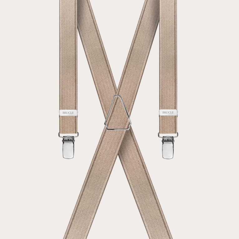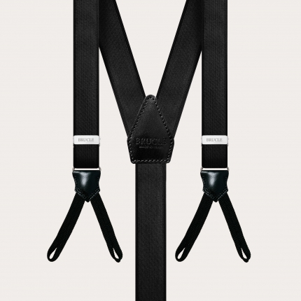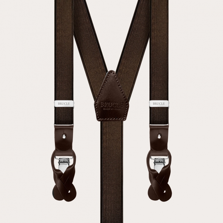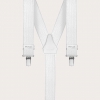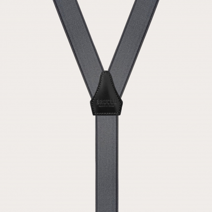 Y-shape convertible elastic suspenders, blue. Ideal for ceremonies and formal occasions, these comfortable elastic suspenders can also be matched with bowties, neckties and pocket squares, according to personal taste and requirements. Entirely handmade in Italy.
