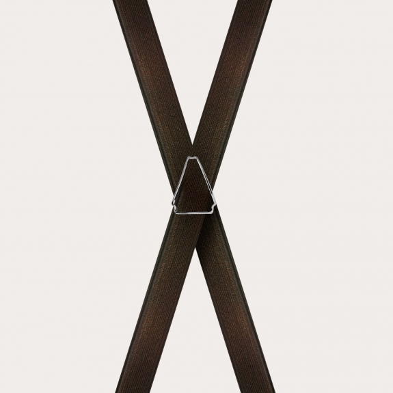 Formal skinny X-shape elastic suspenders with clips, satin brown