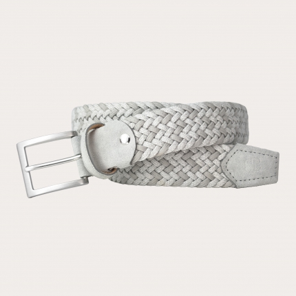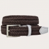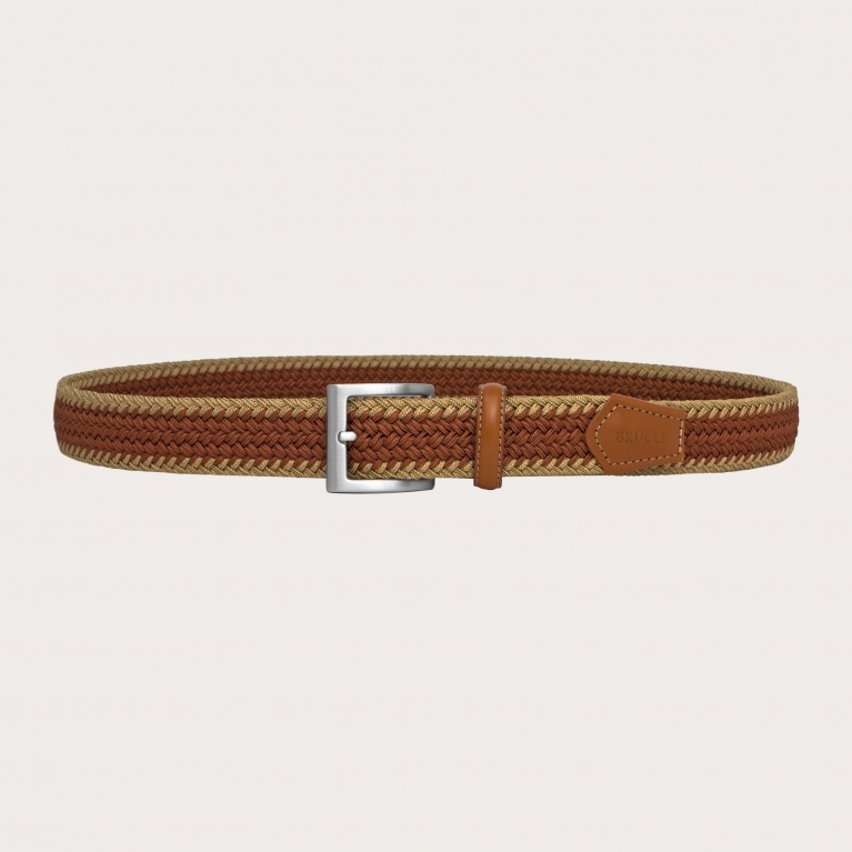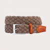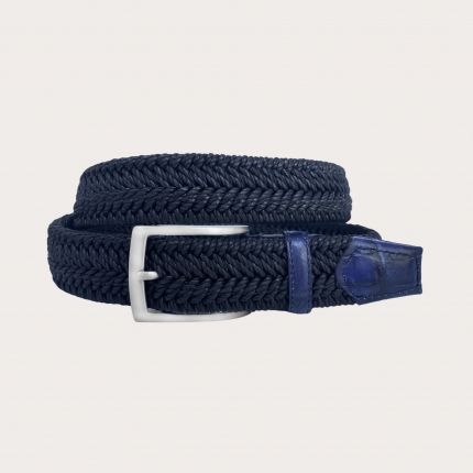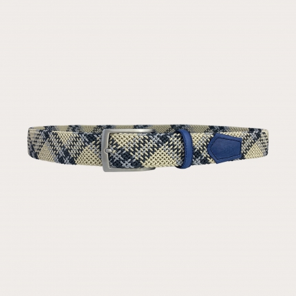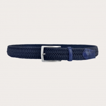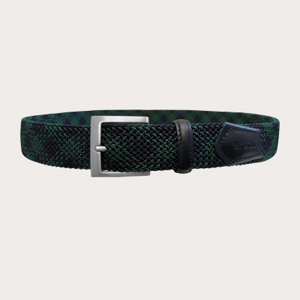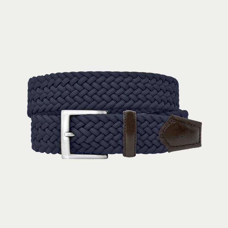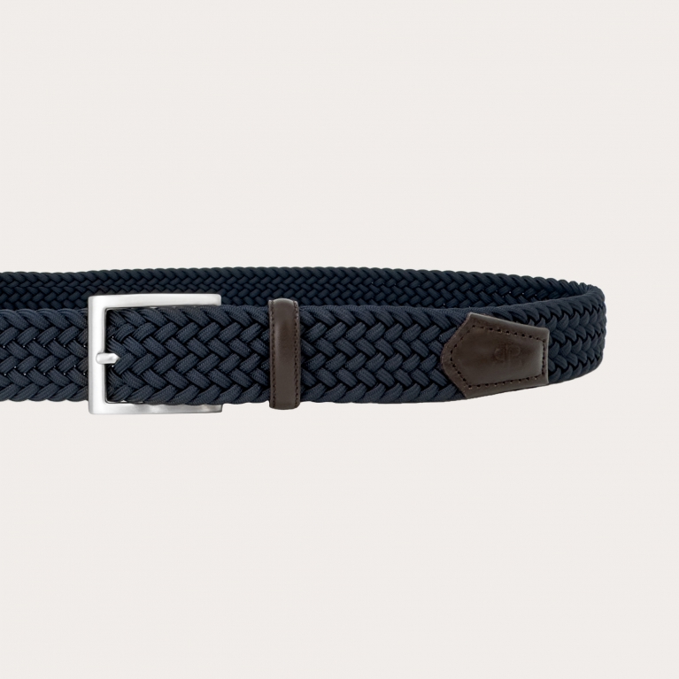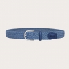 Unisex elastic belt in wool with a distinctive blue jeans color, adorned with a nickel-free vintage-style buckle and hand-dyed leather details in an elegant ottanio shade.