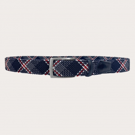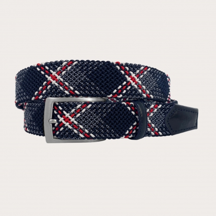 Bicolor braided elastic belt in green and blue regenerated leather with nickel-free buckle in full brass with American silver finish, giving a vintage character to this splendid belt model.