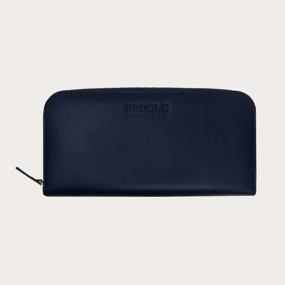 Zip around wallet with brass zip in genuine Saffiano print leather from the new BRUCLE wallet collection.