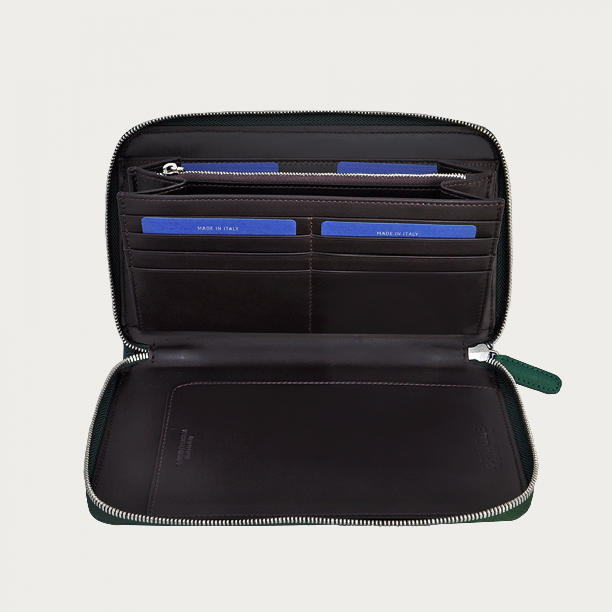 Luxurious men's crocodile wallet crafted from the square tail scales, the most exclusive part. In a beautiful and distinctive petrol green color, it is entirely handmade in Italy. Equipped with 4 credit card slots and a coin pocket with snap button closure, it is a versatile and spacious model. Customisable with engravings, it makes a perfect gift idea.
