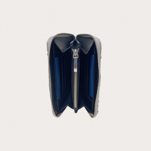 For the new collection of BRUCLE women's wallets, a roomy and compact model with a coin purse, in refined python leather delicately hand-colored in a light and pearly silver color. A wallet with a unique and inimitable refinement thanks to the artisanal coloring, 100% Made in Italy.