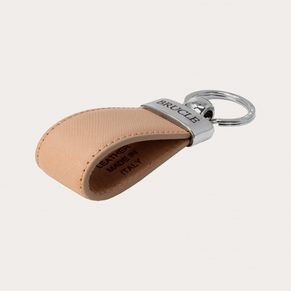 Discover the essence of luxury with the BRUCLE keychain in genuine saffiano leather, in écru. A symbol of high quality and Made in Italy craftsmanship, each keychain is a masterpiece customizable with engravings of dates, names, or initials, making it the ideal gift for those who desire uniqueness and sophistication.