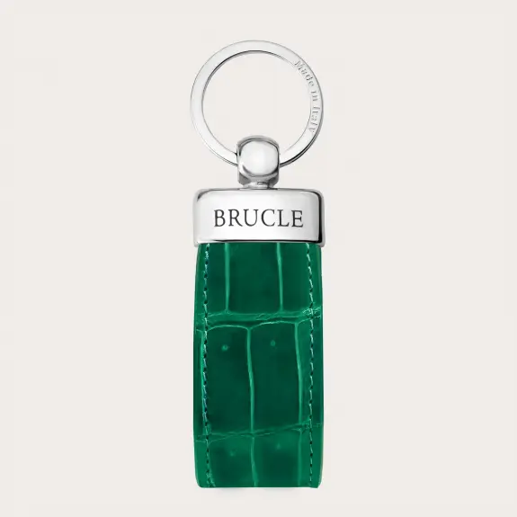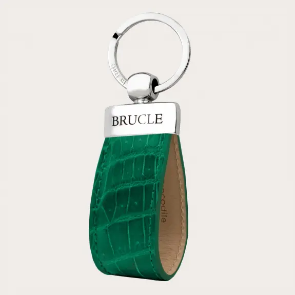Handcrafted green crocodile keychain made entirely by hand in Italy.