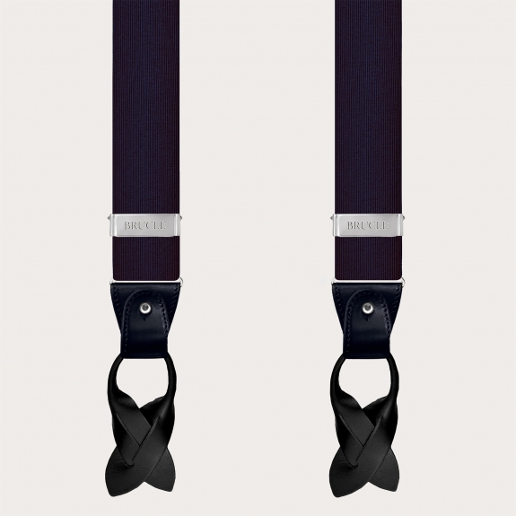 The blue silk men's suspenders are practical and versatile: they can be worn with buttons or with clips, adapting perfectly to your style and to various occasions.