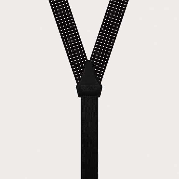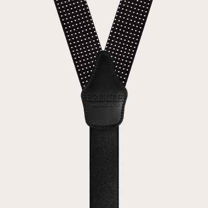 Formal Y-shape fabric skinny suspenders in silk, dotted black pattern