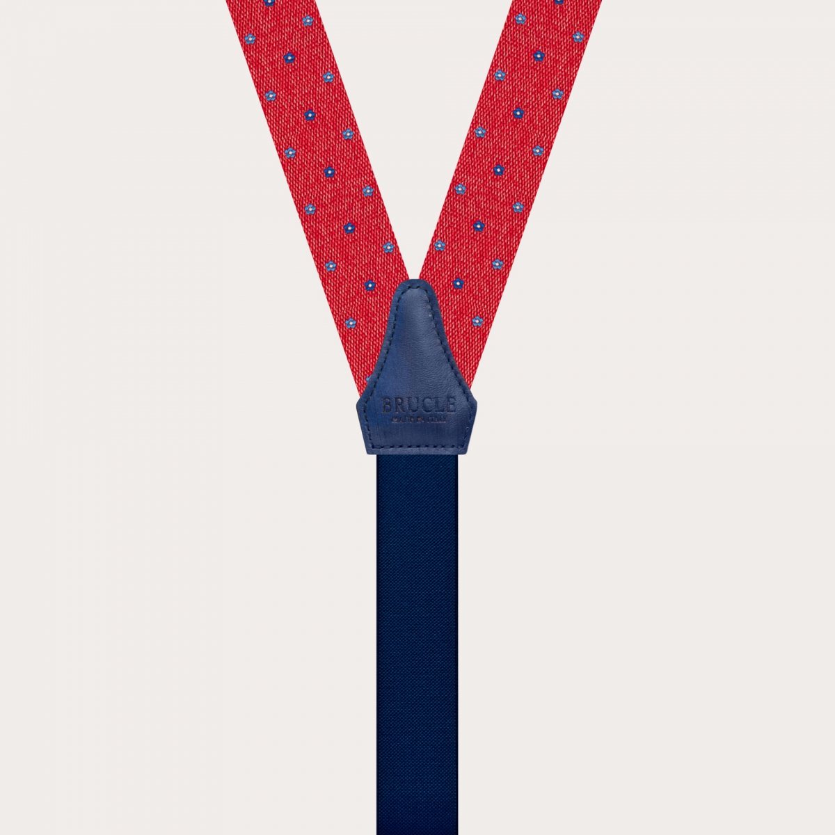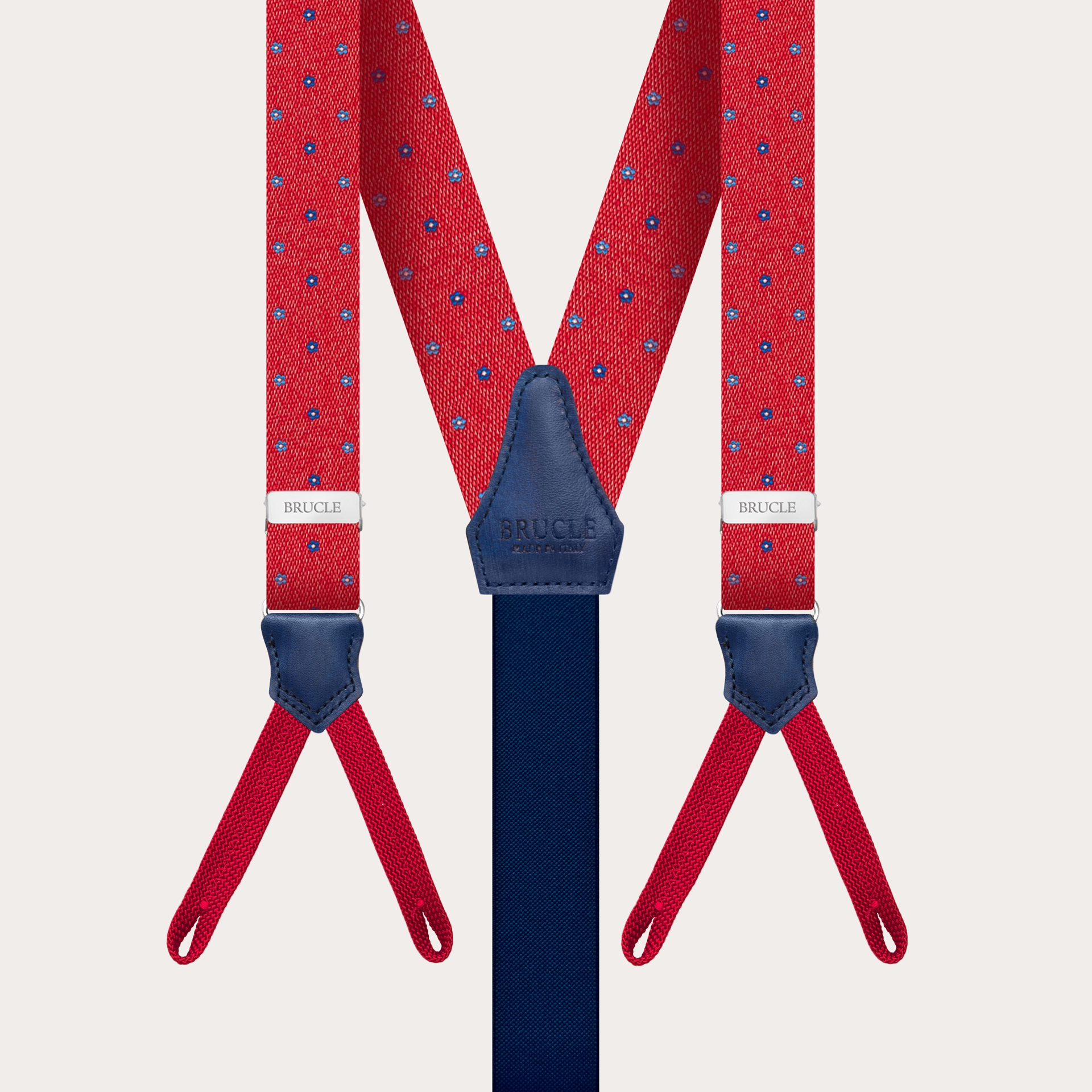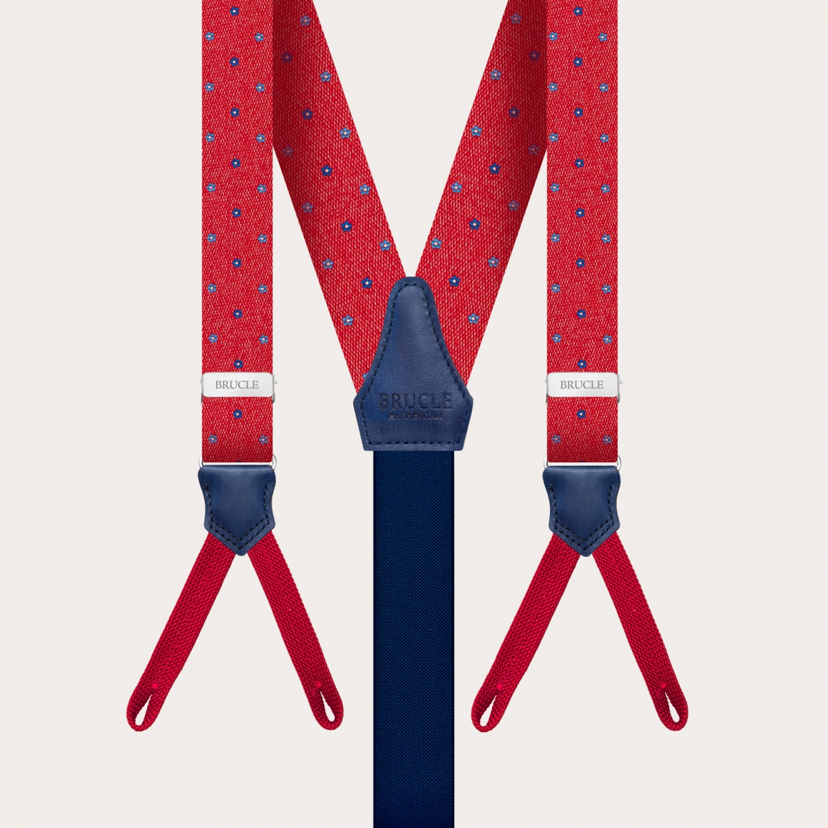 Original silk suspenders with flower pattern for buttons, thanks to the fabric buttonholes. Elegant and trendy, they are a perfect model for an original and refined look.