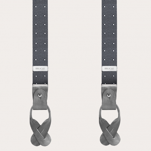 Entirely made in Italy, these high-quality silk suspenders are crafted with premium silk with 74 threads woven in Como, vegetable-tanned bovine leather, and nickel-free metal parts.