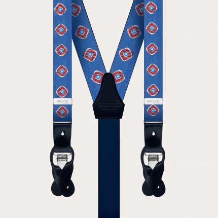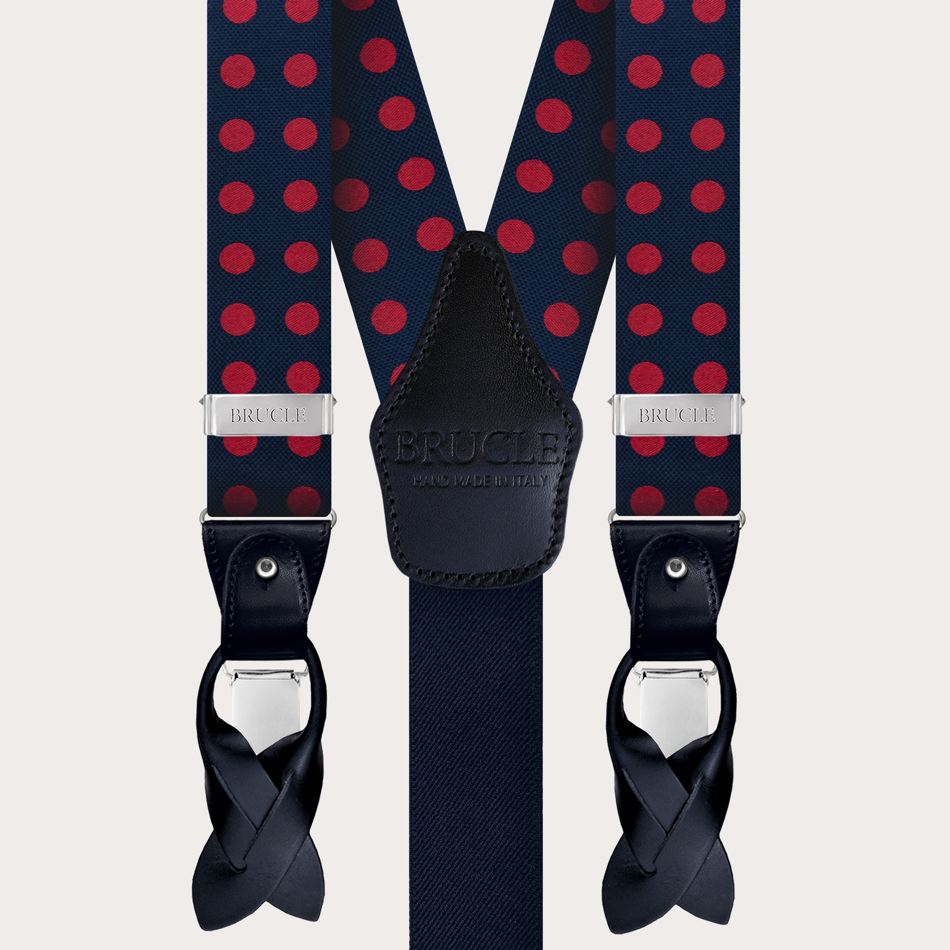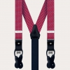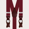 Refined BRUCLE suspenders in pure burgundy pin-dot silk, a symbol of high quality and timeless elegance. These accessories, entirely Made in Italy, embody the essence of Italian tailoring, offering a sophisticated design and unmatched fit.