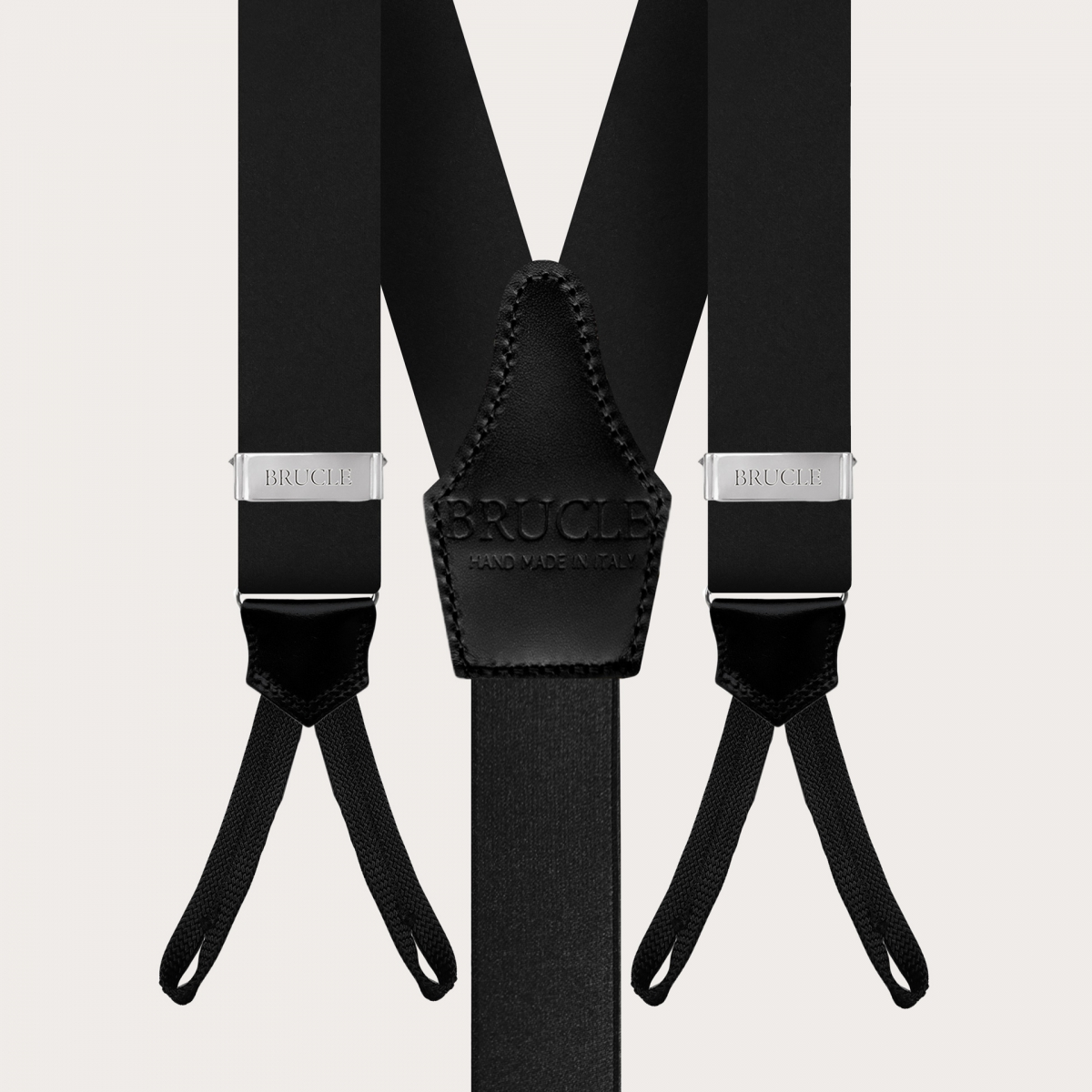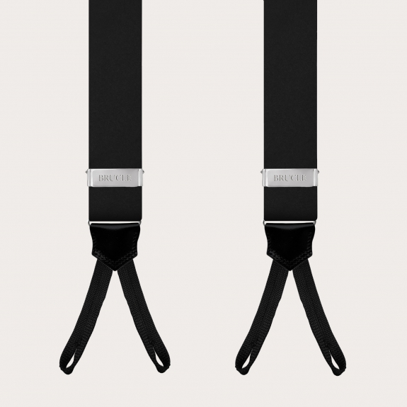 Our black silk satin suspenders with button holes are the perfect touch for elegant events.