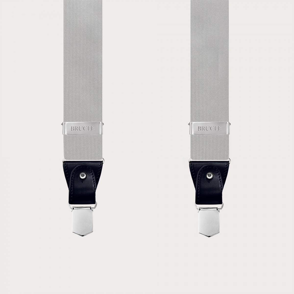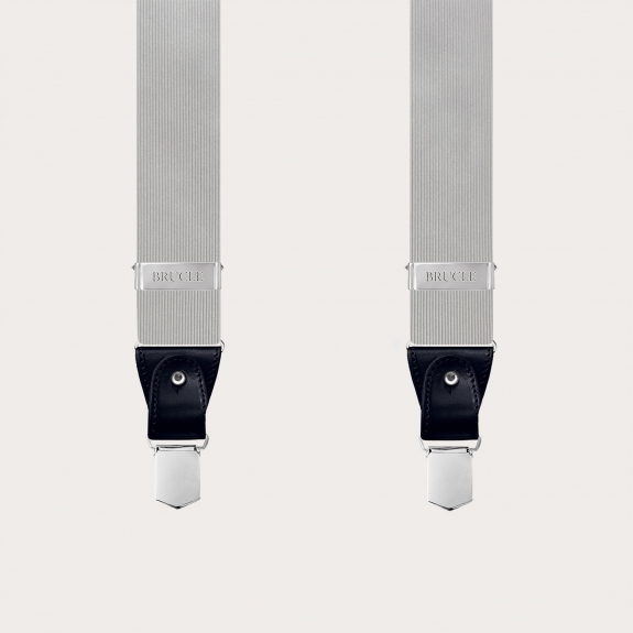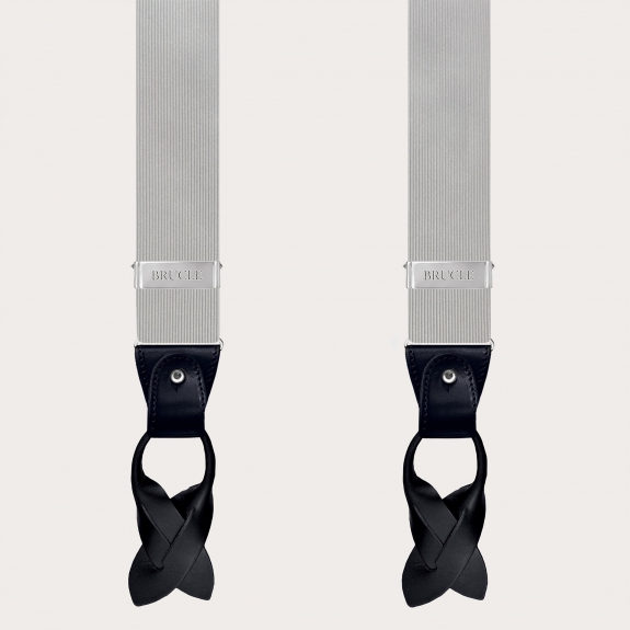 Refined men's braces in gray silk, with contrasting black leather parts.