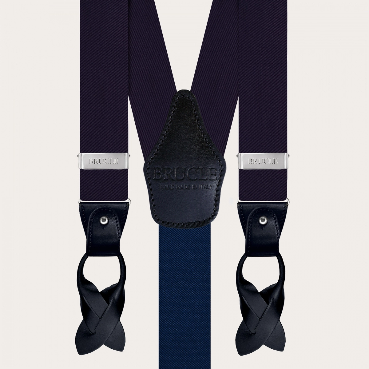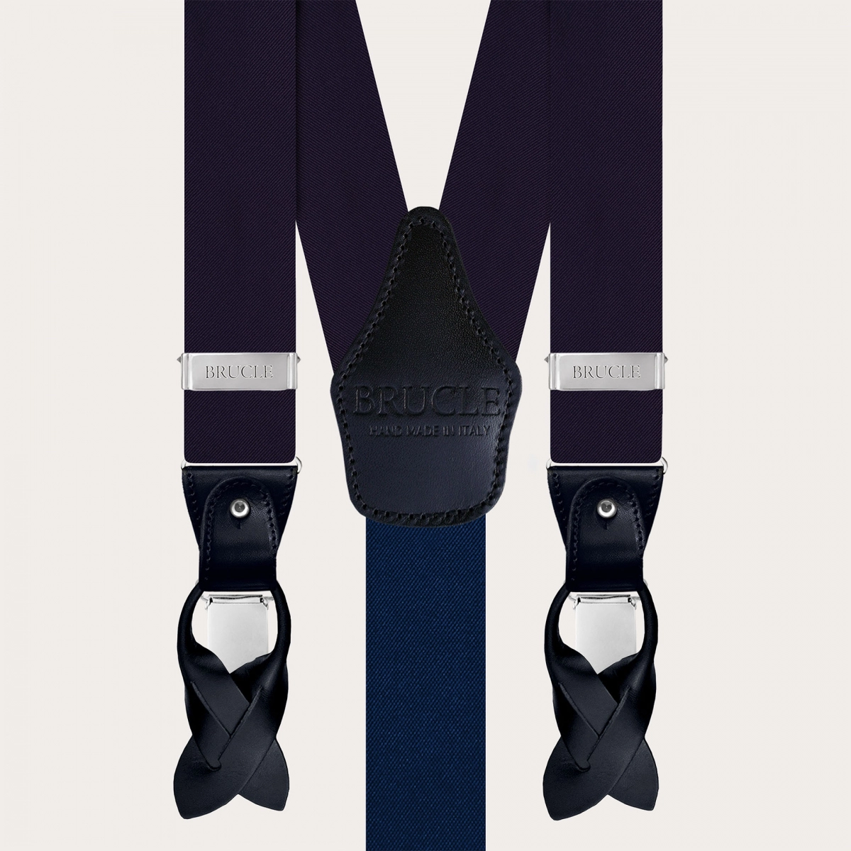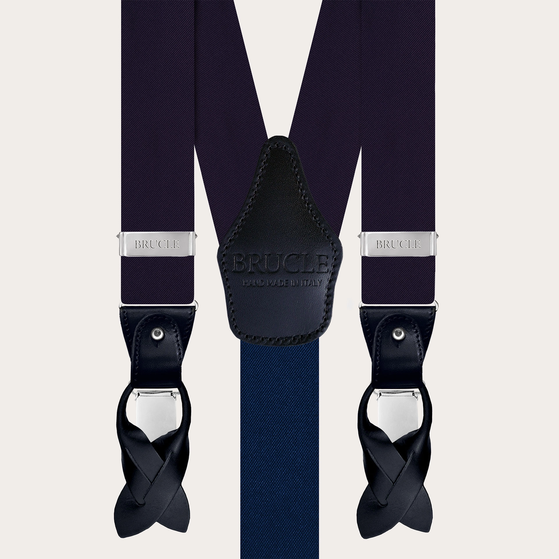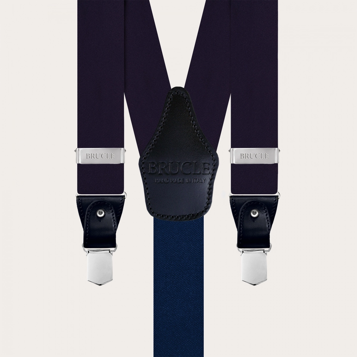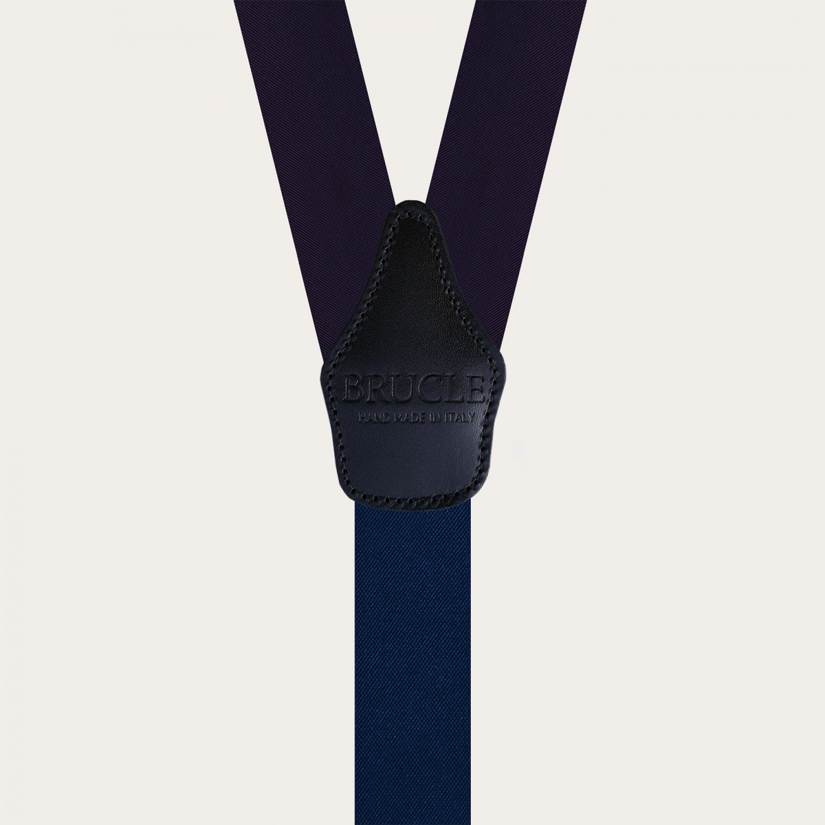 Handmade in Italy using only high-quality materials, these blue suspenders can be paired with other coordinated silk accessories, such as bow ties, ties, and pocket squares, to complete your outfit with an elegant and refined look.
