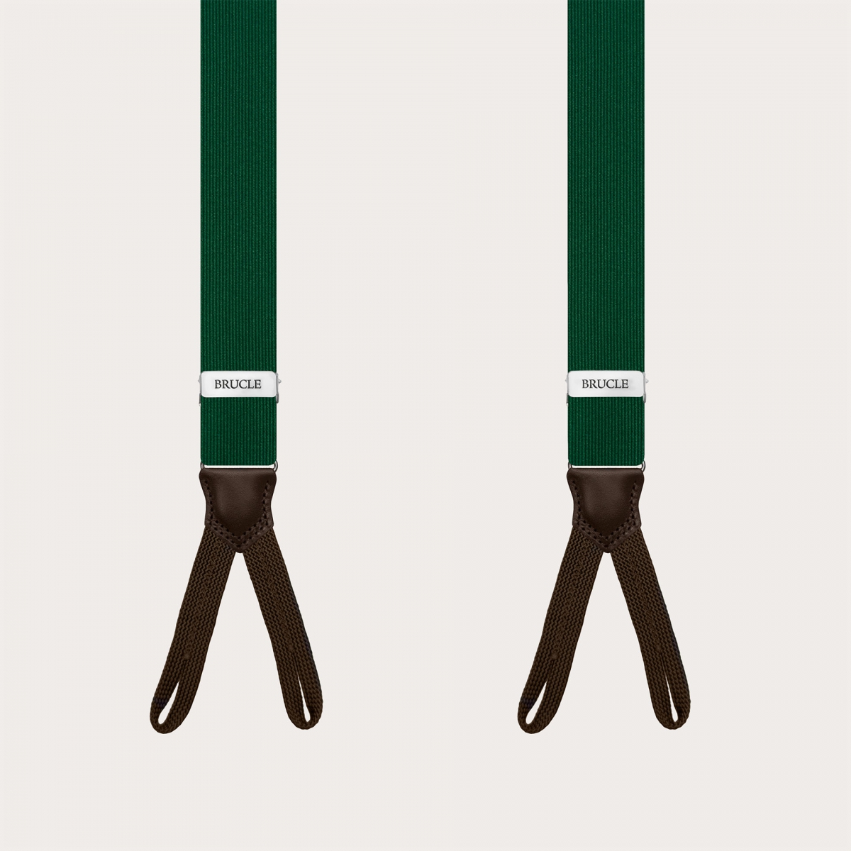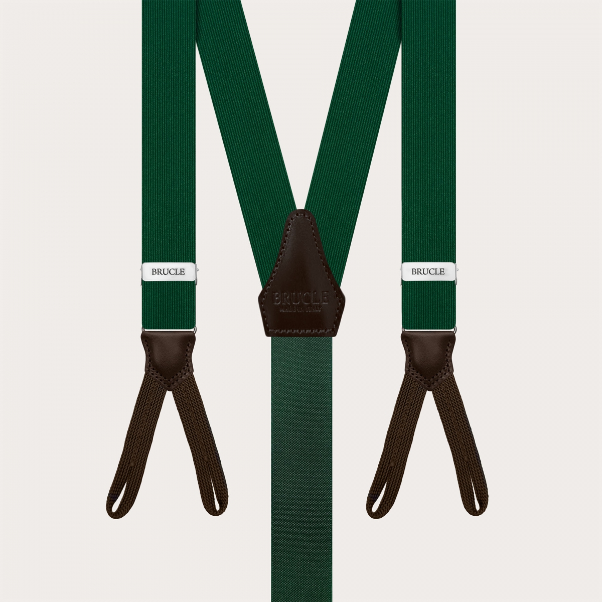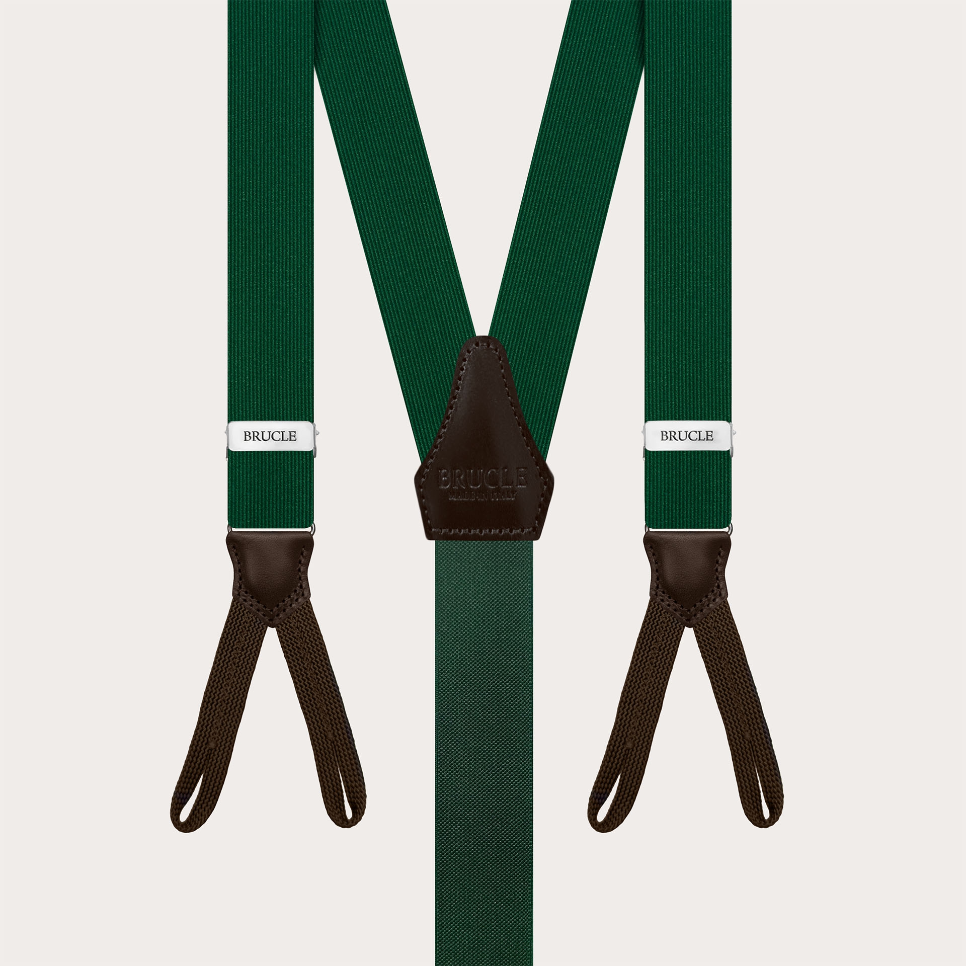 The green silk suspenders for button use are handmade in Italy to ensure you quality and craftsmanship.