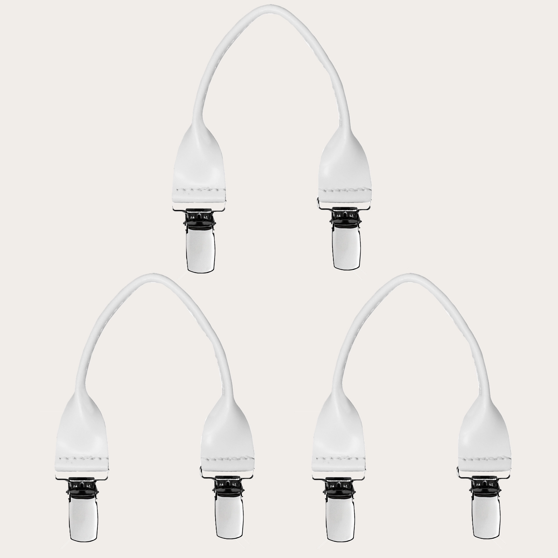 Leather buttonhole braces with clips, 3 pieces, white