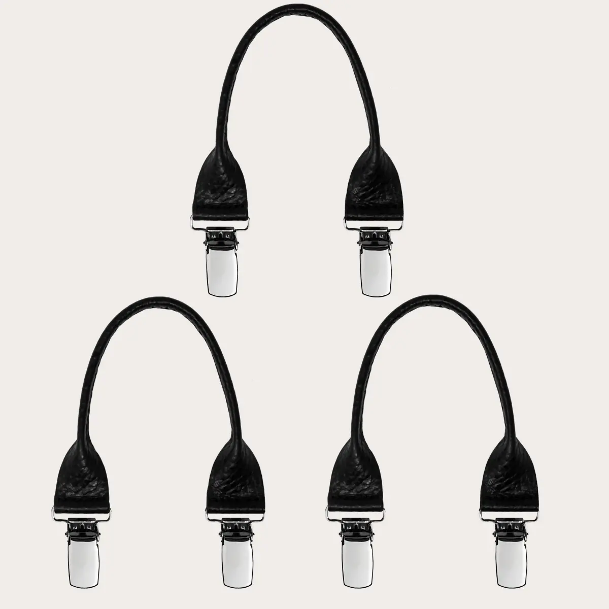 BRUCLE Leather buttonhole braces with clips, 3 pieces, black