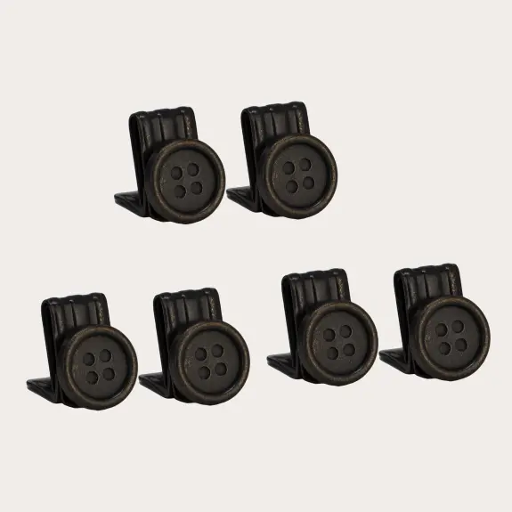 This set of six clip buttons is designed to simplify the use of button suspenders, eliminating the need to sew buttons onto trousers.