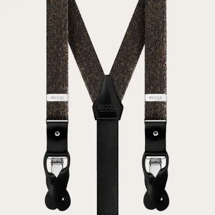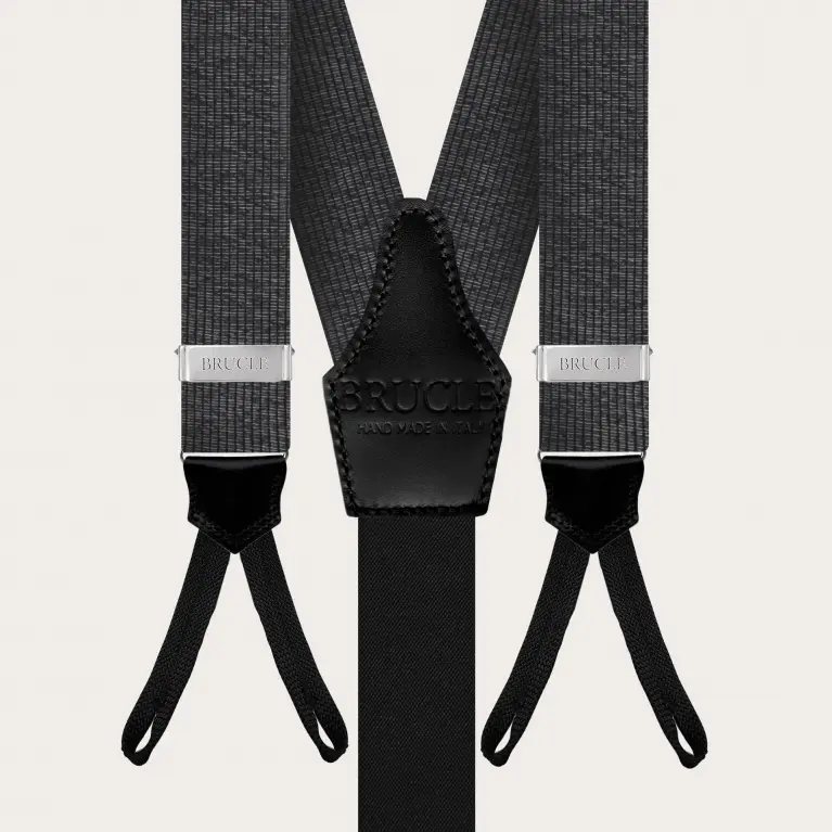 Experience the passion and elegance of Brucle's handmade purple suspenders. Let yourself be captivated by their sophisticated charm and genuine leather details that express the essence of Italian craftsmanship.