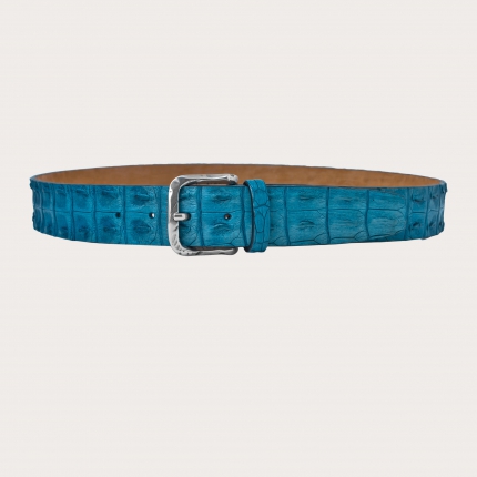 Handcrafted belt in real crocodile tail colored and shaded by hand with the patina technique, bordeaux shaded black.