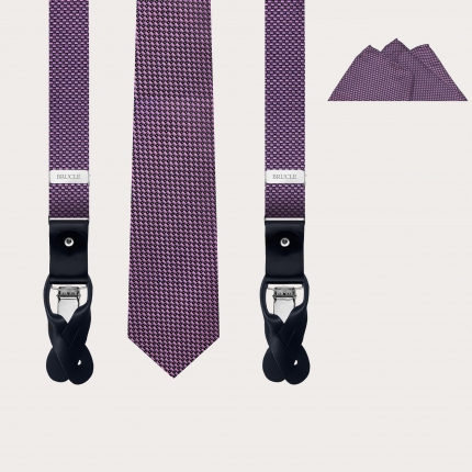 Men's suspenders in brown silk with polka dot pattern
