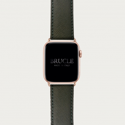 Correa de reloj compatible con Apple Watch / Samsung smartwatch, verde militar Saffiano