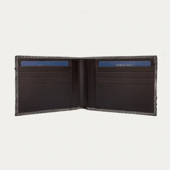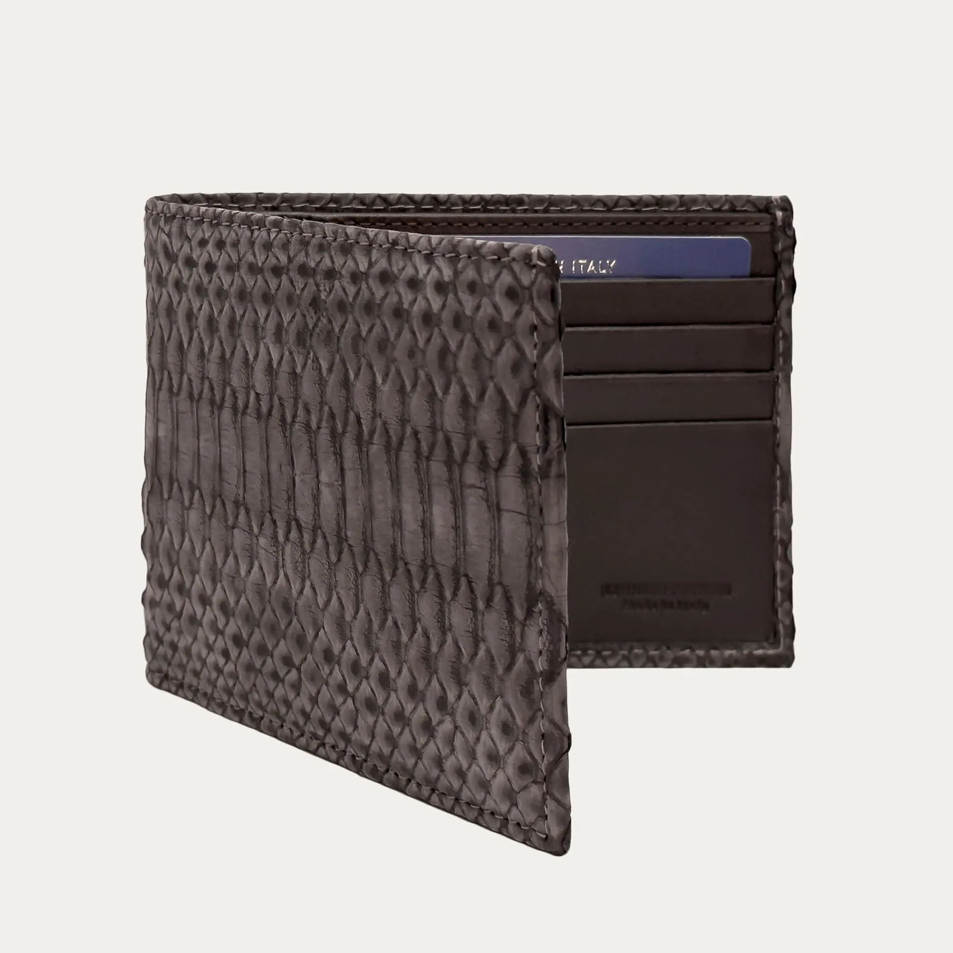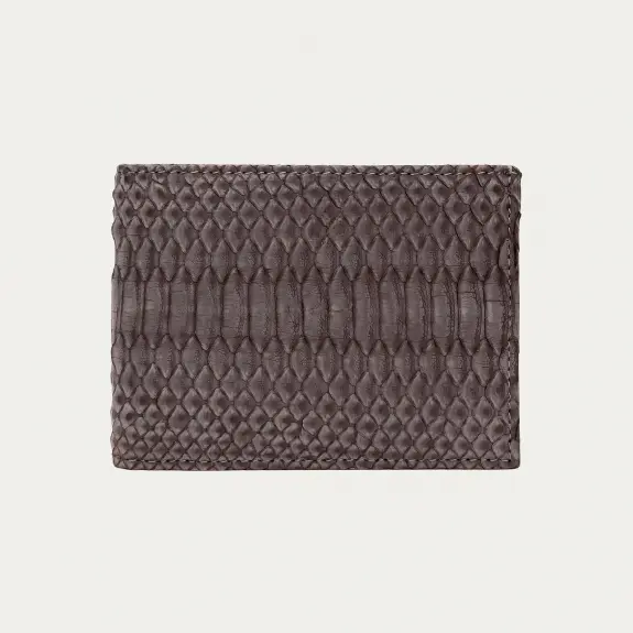 Descubre esta cartera exclusiva elaborada en auténtica piel de pitón reticulado con un sofisticado acabado tipo nobuk.