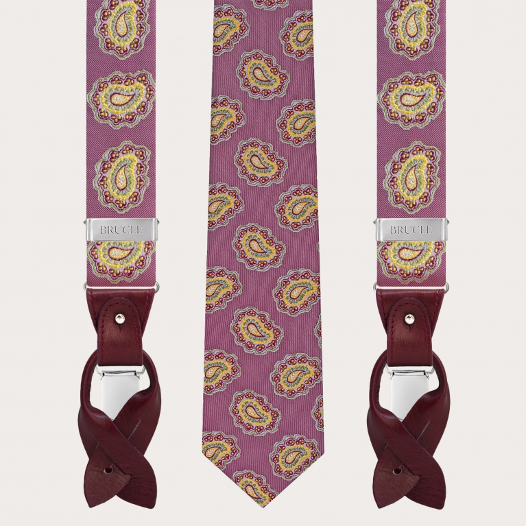 Elegante conjunto de tirantes, corbata y pañuelo de bolsillo en seda, amarillo