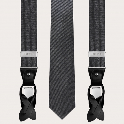 Elegante conjunto de tirantes finos y corbata en seda marrón