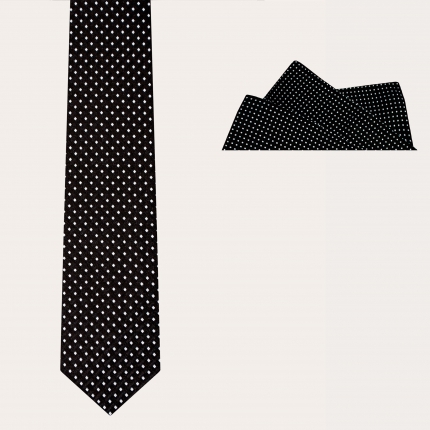 Compuesto por una corbata con un ancho de 8 cm y forma semi botella y un pañuelo de bolsillo con bordes enrollados a mano, es el accesorio perfecto para añadir un toque distintivo a tu atuendo.