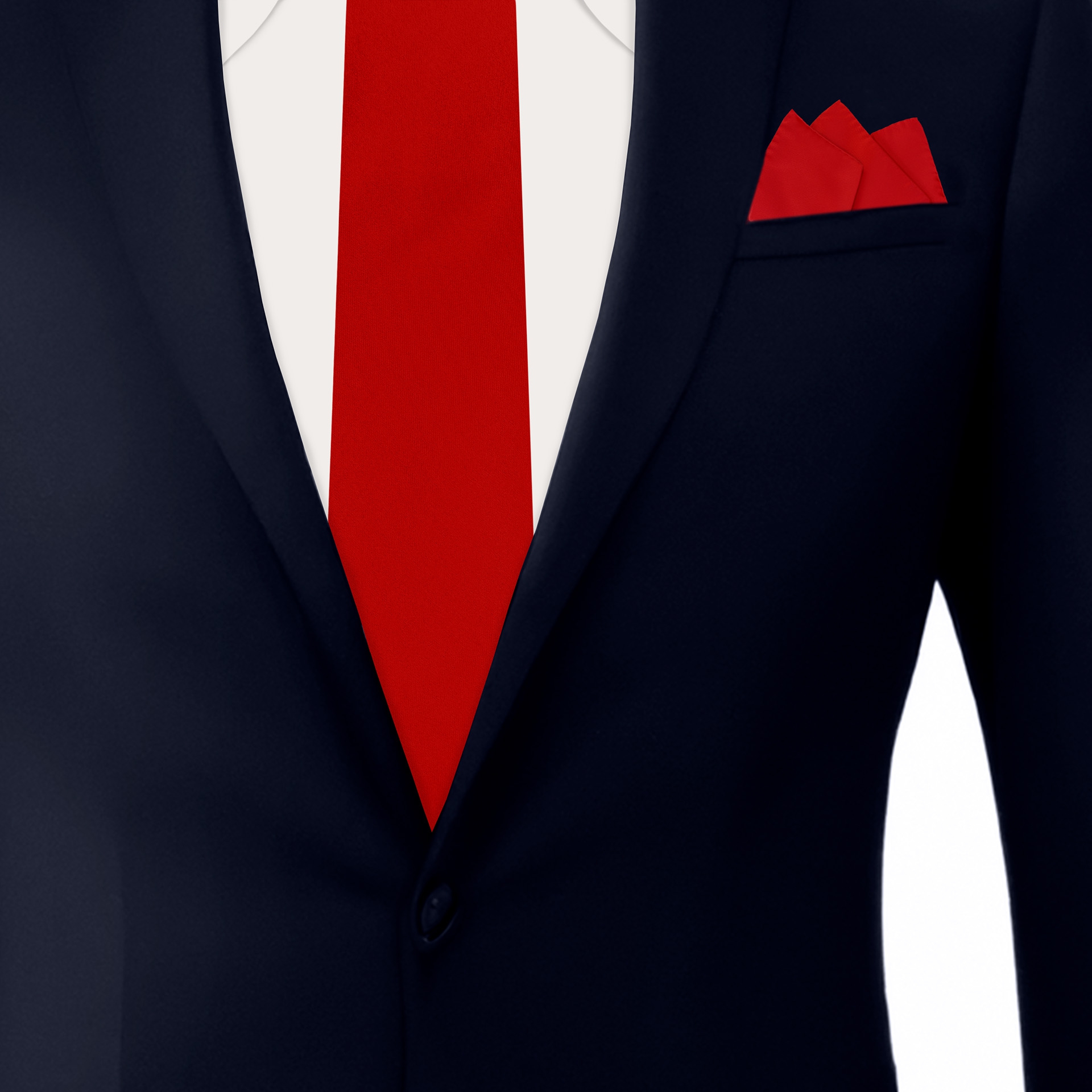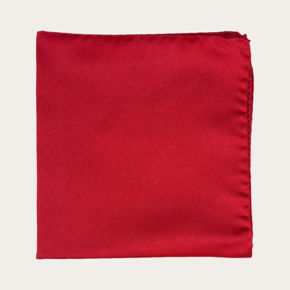 Conjunto coordinado de corbata y pañuelo de bolsillo en satén de seda rojo