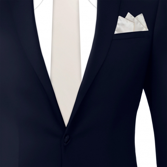 Conjunto coordinado de corbata de satén blanco y pañuelo de bolsillo