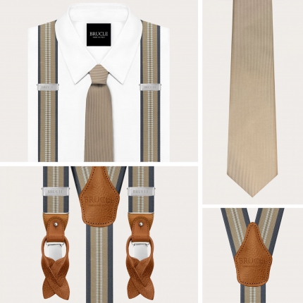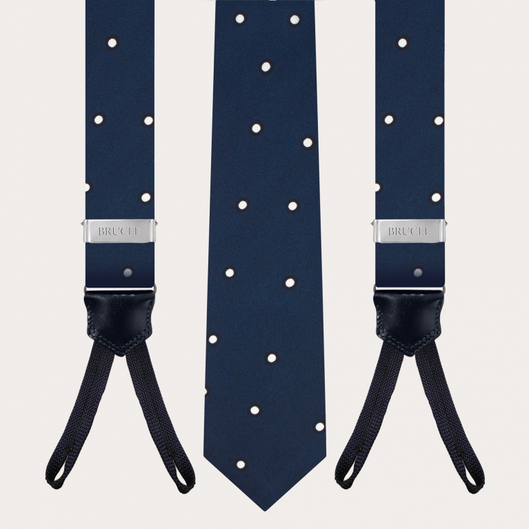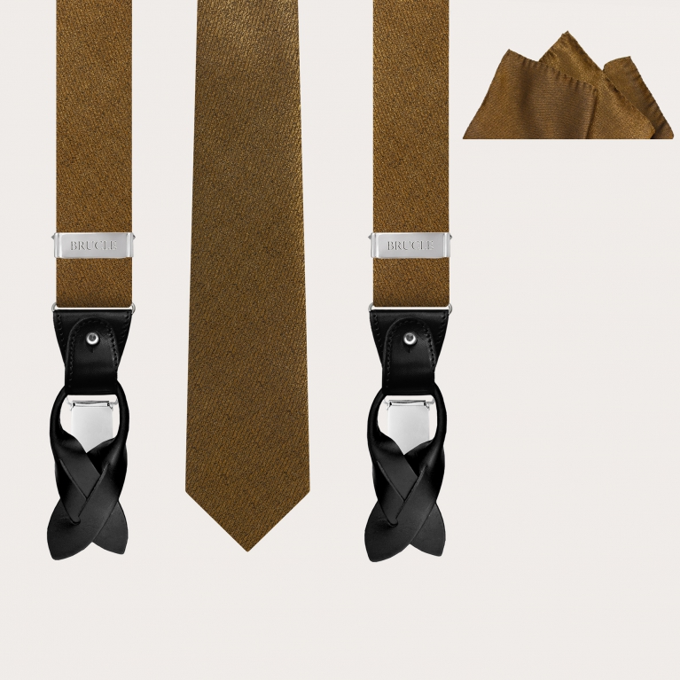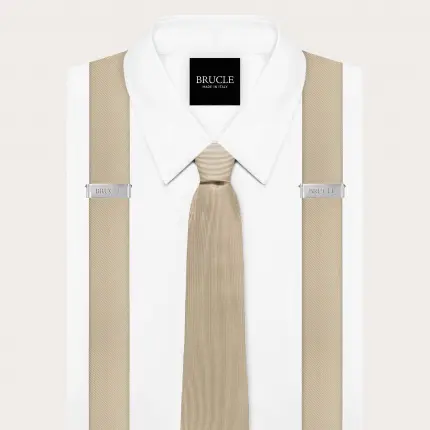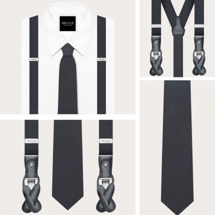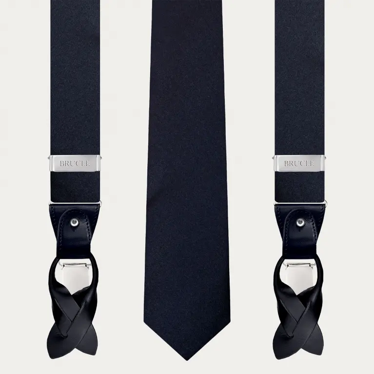 Descubre el set coordinado de tirantes de satén de seda para clips o botones y una corbata roja de 3 pliegues de 8 cm, un conjunto refinado e impresionante que agrega un toque de color a tu look.