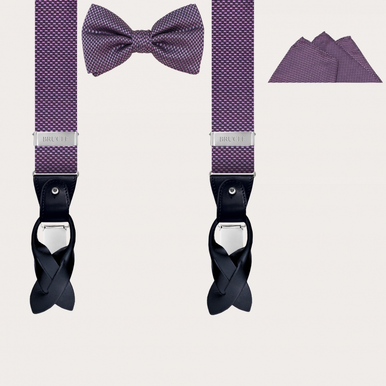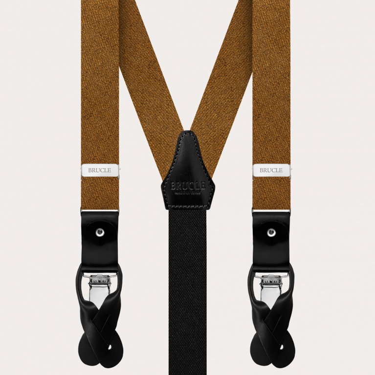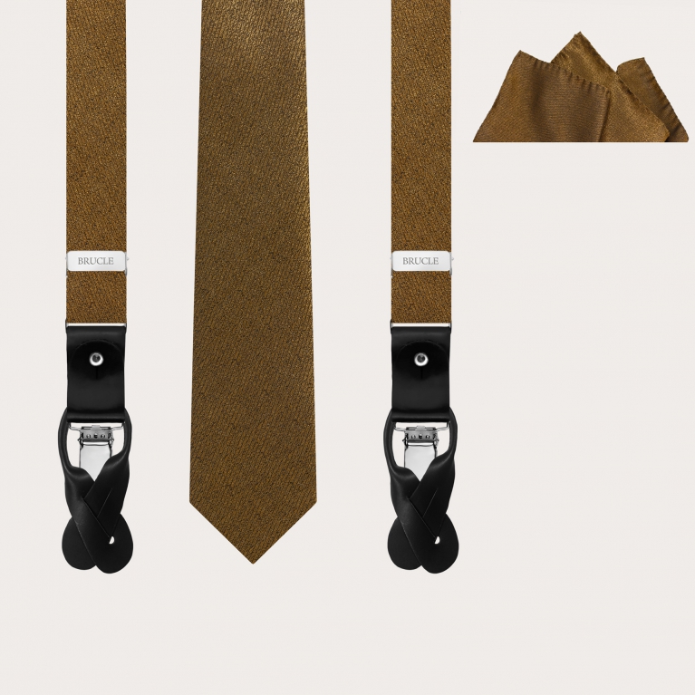 Conjunto de tirantes para botones y corbata de seda amarilla