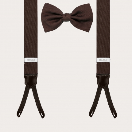 Set coordinado de tirantes y pajarita de seda burdeos con puntos