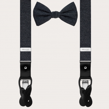 Conjunto de tirantes y pajarita gris perla con puntos para botones
