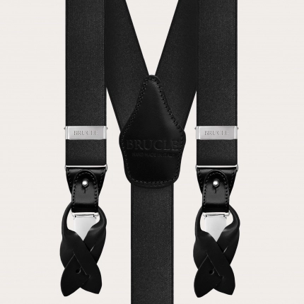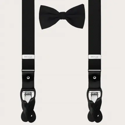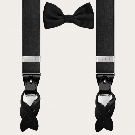 Elegante conjunto de tirantes de raso y pajarita de seda, negro