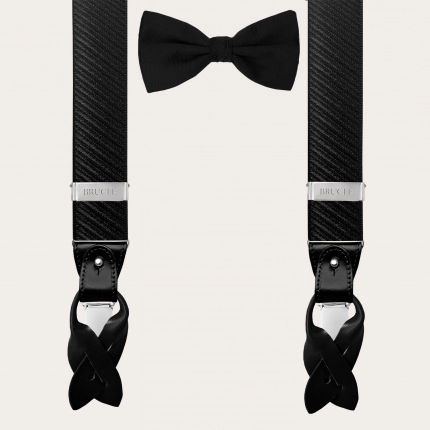 Conjunto de tirantes y pajarita en seda negra