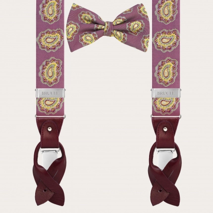 Tirantes y pajarita coordinados en seda, patrón blanco y verde