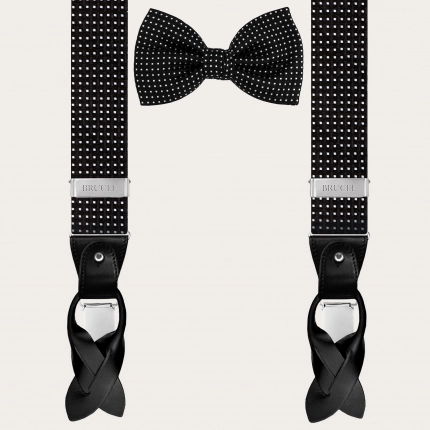 Conjunto melange de tirantes elásticos y pajarita, negro y plata