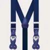 Conjunto de tirantes finos y pajarita de seda, azul