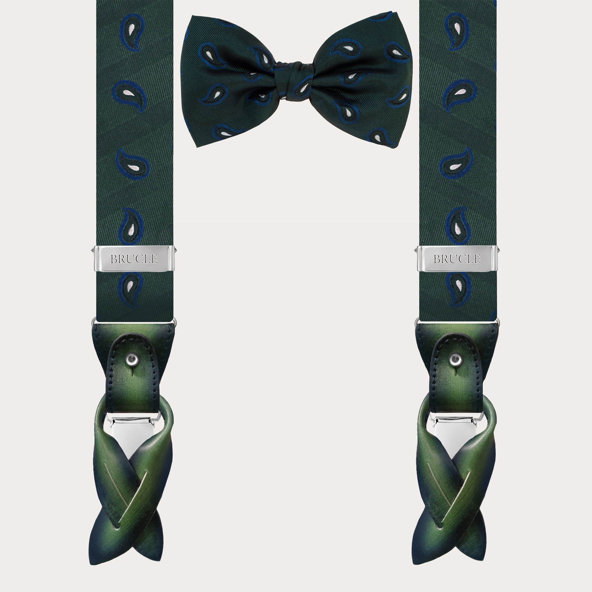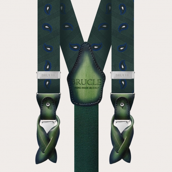 Tirantes de seda para hombre paisley verde Brucle: elegancia Made in Italy. Estos tirantes de seda están realizados con materiales de alta calidad que duran en el tiempo.