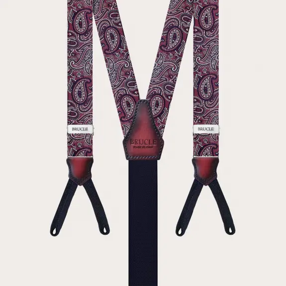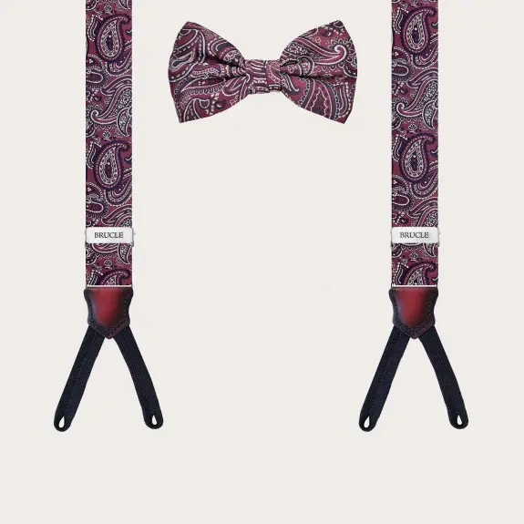 Conjunto coordinado de tirantes para botones y pajarita paisley burdeos