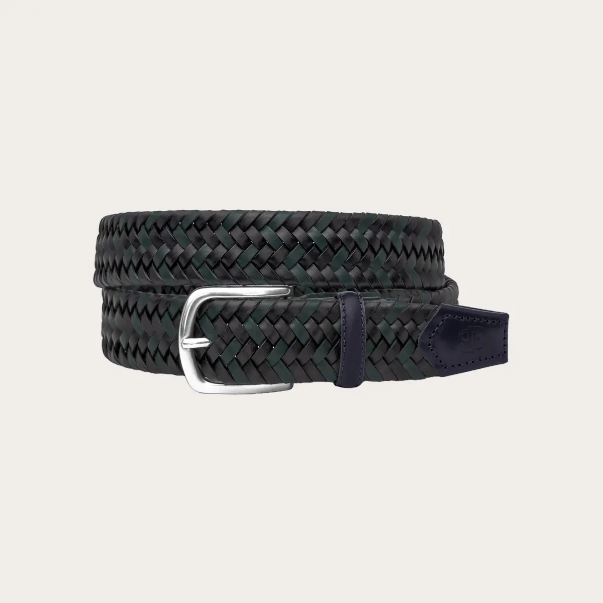 Cinturón trenzado elástico extra largo de cuero, verde y azul
