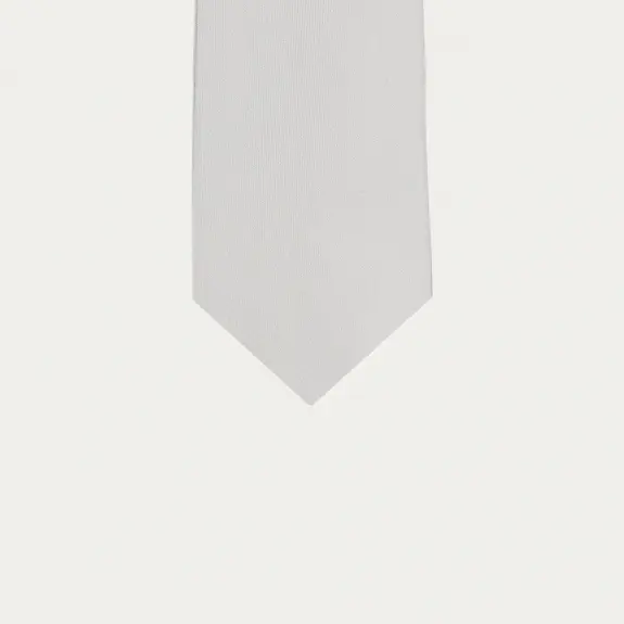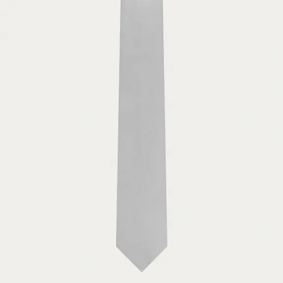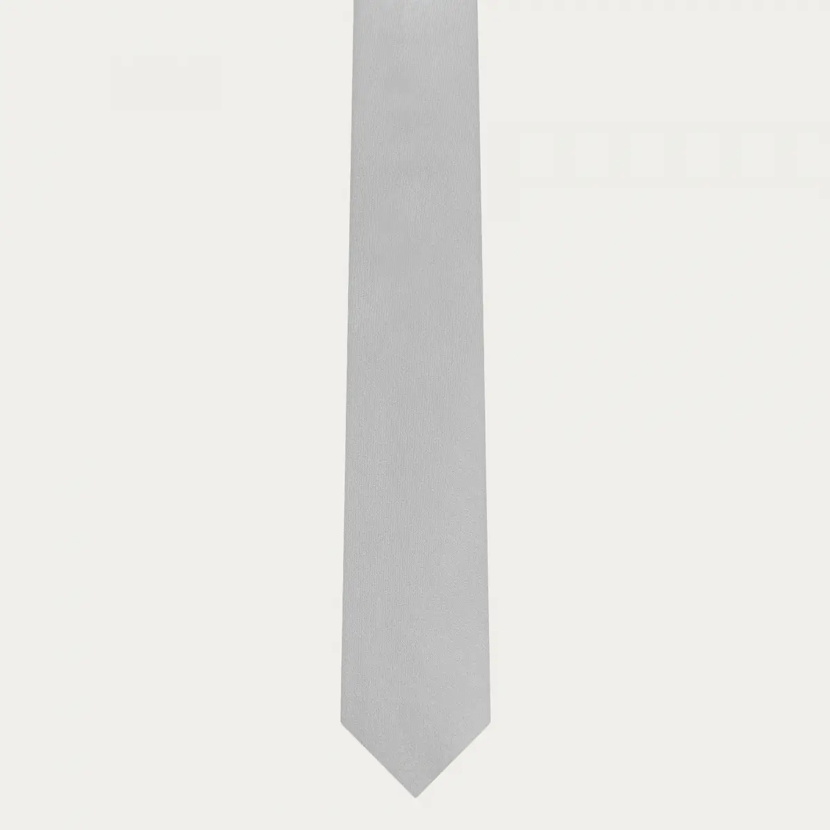 Corbata estrecha gris perla en raso de seda hecha a mano