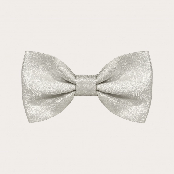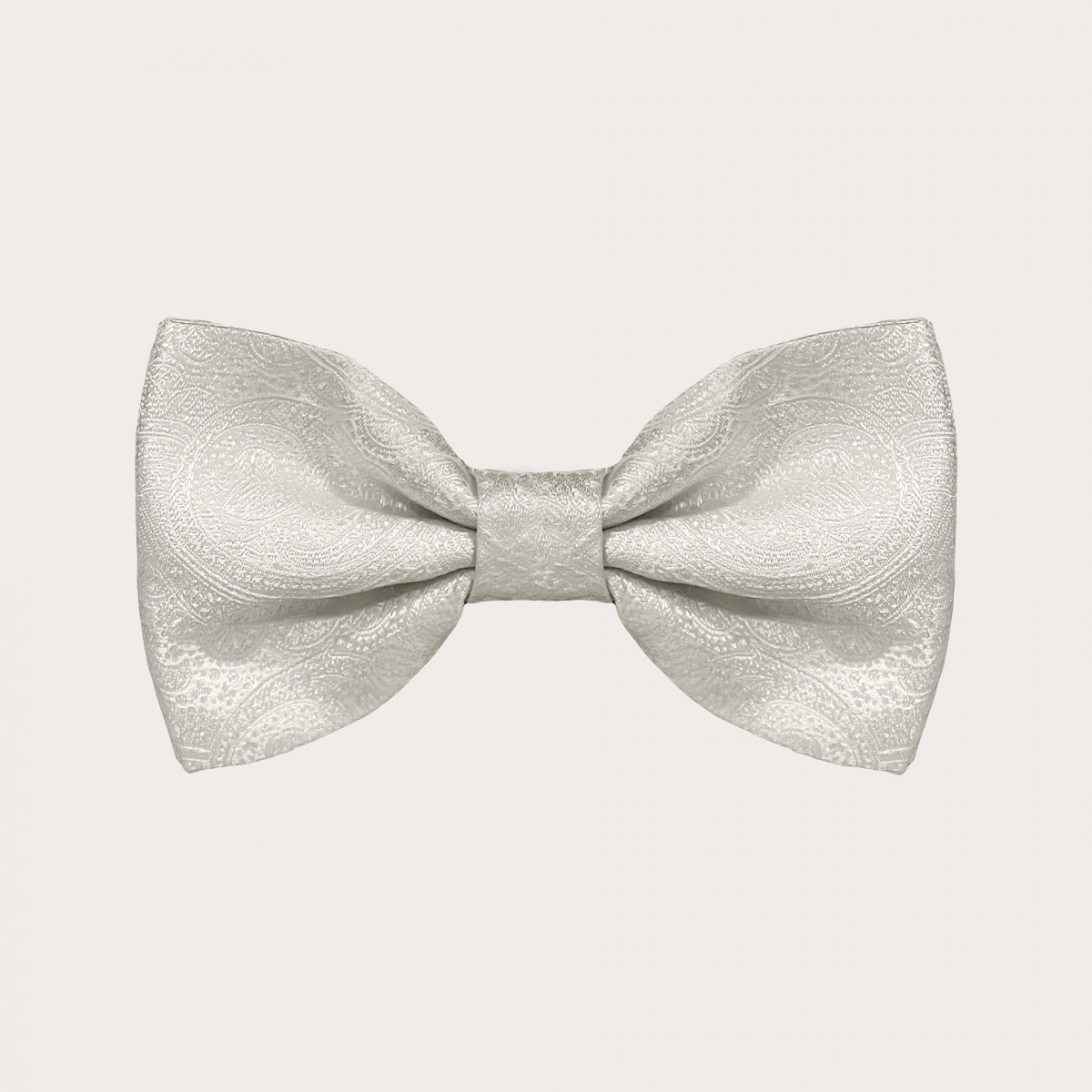 Elegante pajarita en satén de seda blanca, perfecta para ceremonias y ocasiones formales donde se requiera la máxima elegancia.